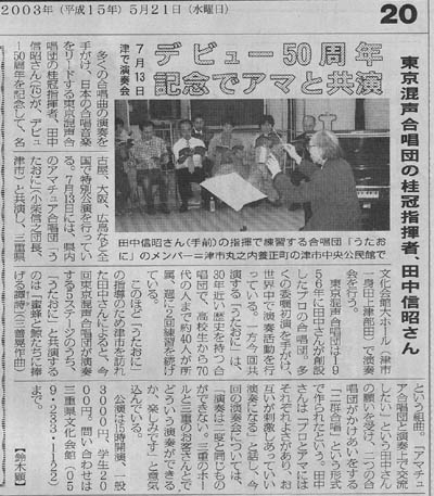 2003年5月21日 毎日新聞 おはよう三重Bより