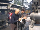 金山寺では、観音様の誕生日とかで、多くの人で賑わい、また大きな線香が売られています。ケイカさんの勧めで全メンバーがこれを手にし、中国流に四方を拝んで、コンサートの成功を祈願します。