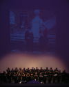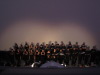 暗い中で 楽譜を追うと 目がショボショボ 後ろの壁は スクリーンに アンコールの 歌詞が 映し出されて います |