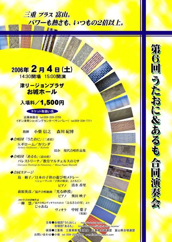 第6回うたおに&あるも合同演奏会 2006年2月4日(土) 14:30開場 15:00開演 津リージョンプラザお城ホール |