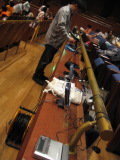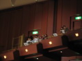 前日の練習 ズラリと並んだマイク 今晩、聴くのかな? 11段の合唱台 |
