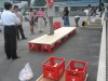 会場となった体育館の前で ![]() 乗っても大丈夫かな? ボルトで固定作業中 乗ってもOK! ジョイント部分はこうなっています 山台完成 |