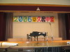 今年初めてお邪魔した学校は、 ピアニスト嬢とソプラノ嬢の出身校 久居中学校。 昨年度に引き続き、2度目の訪問となります。 11時に集合してから、昼休みを利用して準備です。 今回、困ったのが山台がないとのこと。 この難問を解決したのが、ナント、ビールケース。 ご近所の酒造 油正でお借りしたビールケースを コンパネで加工して、即席の山台が出来上がりました。 また、今回は、学校側のご意向で、体育館内は光をさえぎり、 舞台をスポットライトやフットライトで照らしています。 結果、とてもよい照明効果が得られましたが、 体育館の中は暑かった。 扇ぎながら聴いてくれた生徒の皆さん。 どうも、ありがとう!! |