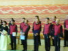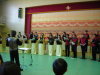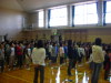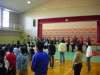 朝8時過ぎ 指揮者の 立ち位置 子供たちは 体育館の この床に 座って 聞いて くれました オープニング |