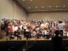 四日市の第九実行委員会の皆さんと 市民合唱団フロイデの皆さんが中心に 年に1回、行われる「四日市の第九」。 「うたおに」が合唱をお手伝いするのは、これで4回目。 そして、セントラル愛知交響楽団さんとご一緒するのは 2004年以来、2回目となりました。 この日は、16:00開演の音楽会。 通常なら、演奏前も演奏後もゆっくりできる時間帯ですが、 今回はそうは参りません。 何故なら、この日はクリスマスイブ。 うたおにの練習場をご提供いただいている津阿漕教会さんの 燭火礼拝が行われるからです。 どちらにも「うたおに」が出ない訳には参りません。 ナントカ、燭火礼拝の開始時刻を 19:30にしていただきましたが、四日市で第九を歌い、 津までの移動も含め、果たして間に合うのか? メンバーの心配をよそに演奏が始まります。 「ふるさとの四季」に引き続き、 指揮者の小松さんの主張でしょうか、 無意味に粘らず、小気味よいテンポで第九が進みます。 エッ、小気味よいテンポ? これはひょっとして、我々への配慮か? そんな筈はないのですが、ナント終演は18:00前 大急ぎで着替え、レコード大賞会場から NHKの紅白歌合戦に向かう歌手さながらに 四日市市文化会館を後にしたのでした。 ろくにご挨拶も申し上げずに会場を後にしてしまいましたが、 市民合唱団フロイデの皆様。 お世話になりました。ありがとうございます。 これで、全員、燭火礼拝に間に合ったはず?(つづく) |