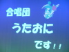 うたおにがこの地を訪れるのは2度目。 2001年にコーラスピクニックを始めた頃は 「見知らぬ土地に我々の合唱を聞いてくれる人がいるだろうか?」 と、団員同士で話していたものでした。 それが、今、前回の演奏がきっかけとなり、 お招きにあずかることができました。 7年前に夢見た活動の広がりを実感するとともに、 素晴らしい機会を与えてくださった紀北保育所連絡協議会の皆様に ただただ感謝です。 さて、演奏は、お馴染みの曲を中心に ソロや特殊効果(?)を取り混ぜて進みます。 途中、指揮者の強引(!)なトークにより、 本プロ終了後には、たくさんのアンコールを頂戴したのでした。 そしてアンコールの1曲目は「蛍の光」。 ところが曲が始まると何やら会場にどよめきが。 最初は、どよめきの意味が分からなかったのですが、 確かにアンコールで「蛍の光」とくれば、 まさに閉店の音楽ではないか! 我々の歌にあわせ、「本日のご来場まことに・・・」と アナウンスがあれば、ここはパチンコ店か??? もちろんアナウンスはなく、むしろ別れの切なさを歌うこの曲に お客様はすぐに気づいてくれました。 約2時間の演奏会を終え、会場で別れたはずのメンバーと なぜか再び何名かと道の駅 紀伊長島マンボウで遭遇し、 マンボウをほうばり紀州路を後にしたのでした。 |