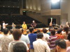 「センター!」 立ち位置 確認中 やっと リハ開始 歌いながら 撮影は できないので ご勘弁ください 森川センセは 衣装のまま 解散式に 参加 |