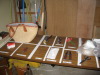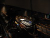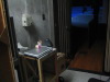 出番を待つ衣装 本番を待つ客席 赤い斜線は 見切線 これより前に 行くと お客様の 目に触れることに 上演予定時刻を 知らせる 張り紙 舞台袖には 小道具一式 |