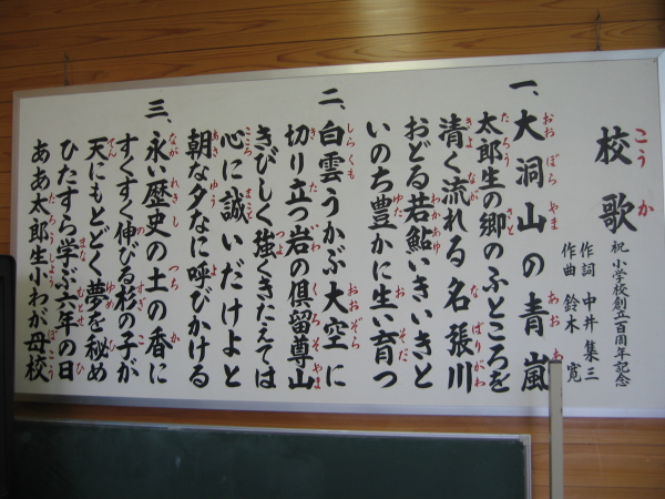 太郎生小学校の校歌。皆さんの記憶に是非とどめてほしい。