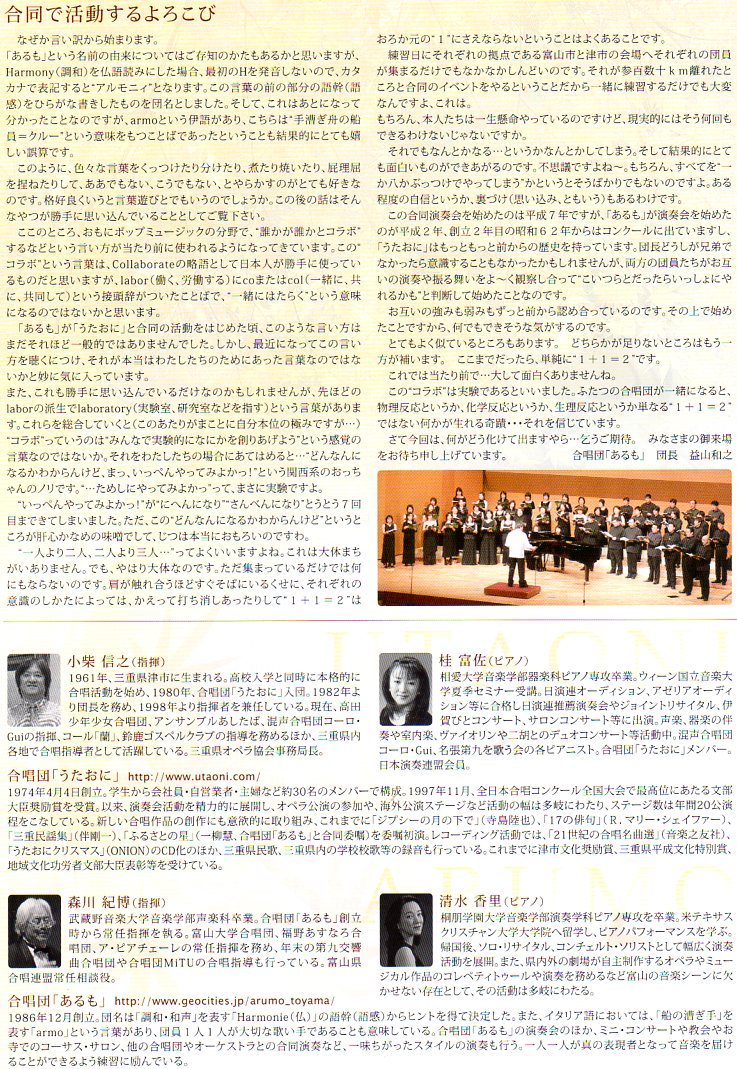 | ■関連情報■ うたおに&あるも合同演奏会の軌跡 まるはちroom (合唱団あるもHP管理人 ”はっちゃん”のブログ。) |