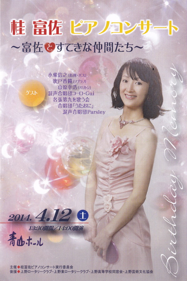 桂 富佐 ピアノコンサート 2014年4月12日(土) 14:00〜 青山ホール |