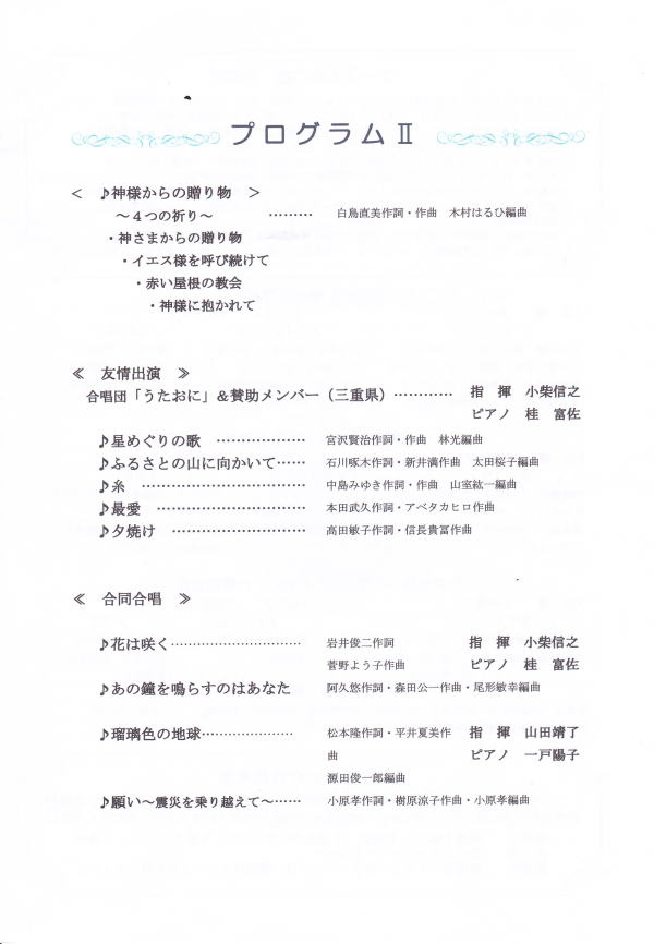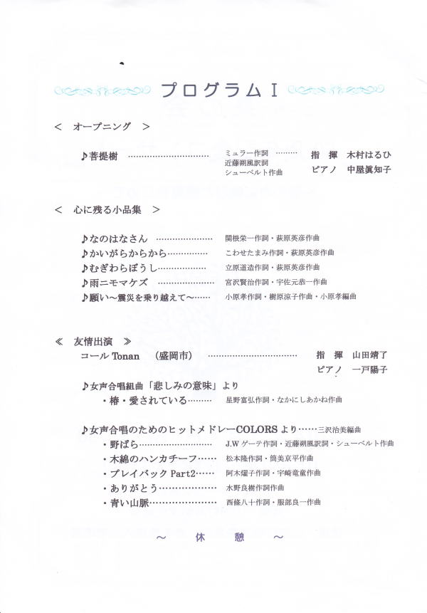 コーラス泉の会 50周年記念コンサート 〜歌の力に歓びと感謝をこめて〜 2014年5月4日 13:30開演 山田中央公民館(大ホール) |