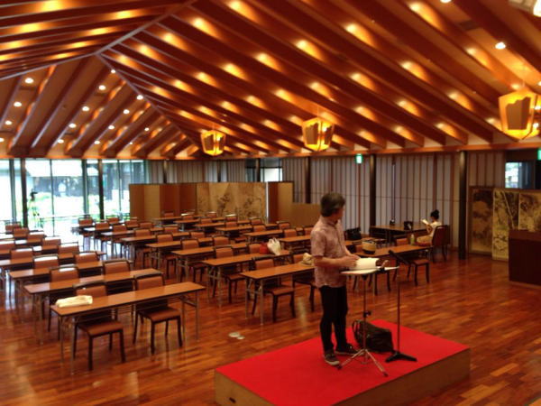 この日は、新しいホールと、蓮池を眺めながらの演奏でした。