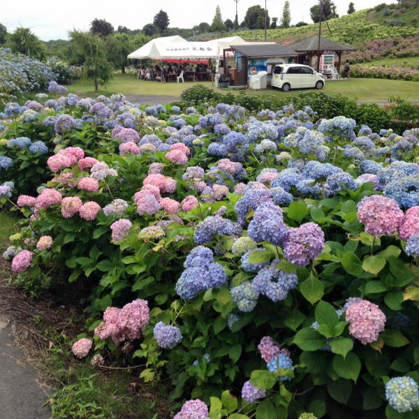 かざはやの里は、津市の南部。 合併前の住所では、久居市戸木町に位置しています。 元々、ゴルフ場であったところを、半分を花園に作り替え、 現在では、9ホールのショートコースと、 あじさいが咲き誇る花園になっています。 イベント会場は、その中心にあるのですが、元ゴルフ場だけあって 駐車場から歩けども歩けども、なかなか到着しません。 「行けば分かる」と言われたものの、不安になってきた頃、 ようやくテントが張られた会場に到着しました。 周囲は、何万本もあろうかと思われるアジサイ。 そこで、様々なゲストとともに、「うたおに」は歌いました。 飛び入りで呼ばれ、Amaizing Grace を歌うことになったときは アドリブ力の無さを痛感します。楽譜どおりに歌えないくせに 楽譜がなくなると急におとなしくなってしまった「うたおに」でした。 |