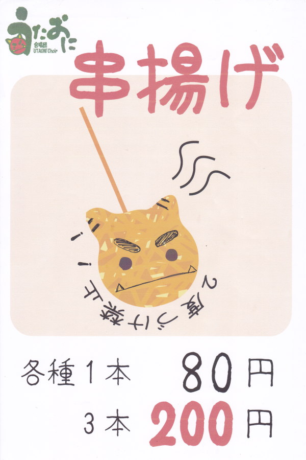うたおにの年表には記載されないマニアックなページまで ありがとうございます。 うたおにの練習場として、いつもお世話になっている 津阿漕教会。 この日は、津阿漕教会の年に1度のバザー。 うたおにも出店を出店します。 毎年、うどんや、焼物などのお店を出していましたが、 昨年からは、揚げ物を出店。 例によって、どんぶり勘定の商売のため、 全く儲けになりません。 売っている方が楽しんでいるので、コレデイイノダ。 合唱団「うたおに」が商売したら、三日で倒産間違いなしです。 熱くもなく寒くもなく、天候に恵まれた秋の1日でした。 |