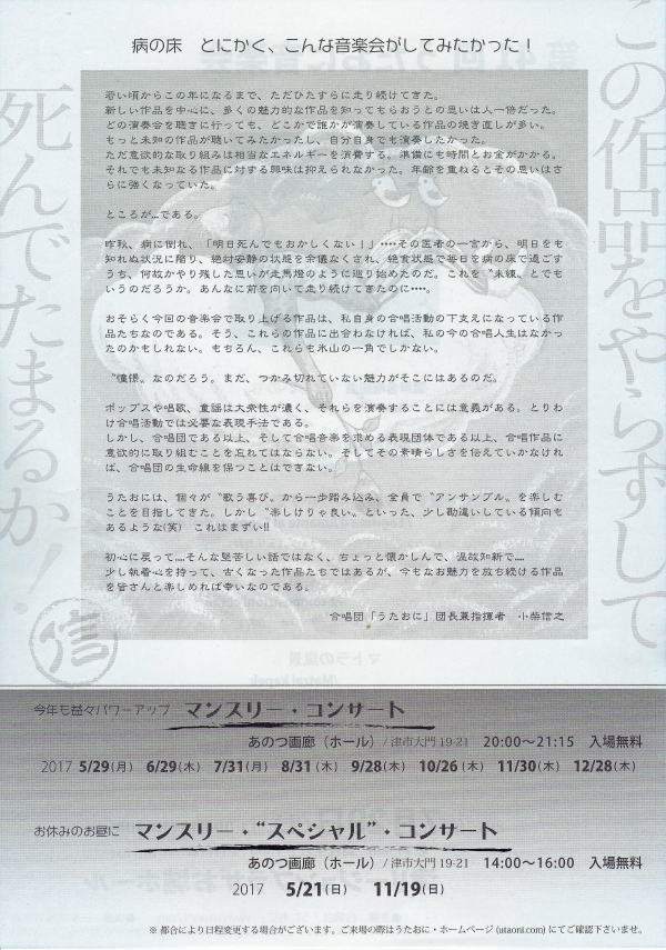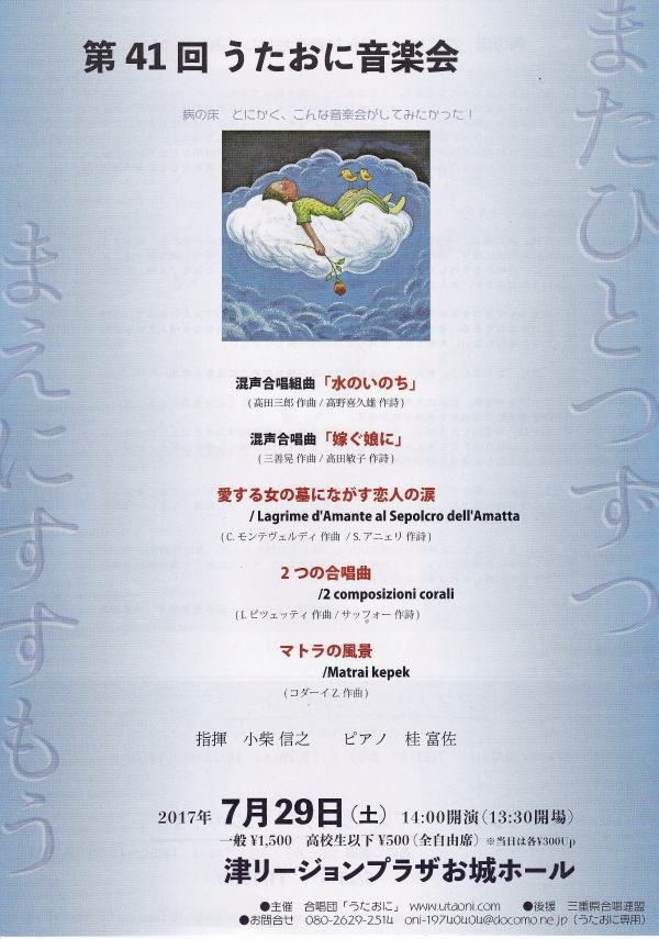 第41回うたおに音楽会 2017年7月29日(土) 14:00開演(13:30開場) 津リージョンプラザお城ホール |