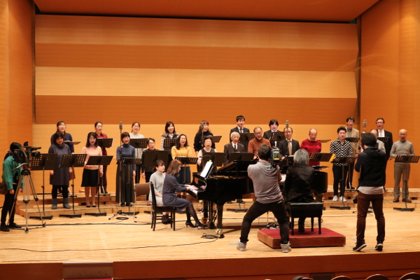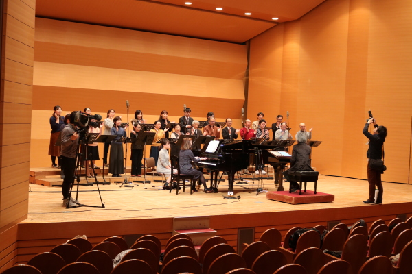 昭和50年に開催された「みえ国体」以来、 46年ぶりに三重県での国民体育大会が 20121年に三重県で開催されます。 正式には、第76回国民体育大会、 通称は、三重とこわか国体です。 開催は3年後ですが、イメージソングが完成し、 合唱バージョンもできたとのこと。 そして、その合唱バージョンの録音を、 「うたおに」が担当することとなりました。 12月の中頃、楽譜が届き、年末年始の日程を縫いながら 新曲にワクワクしながら目を通し、収録の日を迎えました。 収録には、編曲者の牧戸太郎さんも立ち会っていただきました。 牧戸さんは、三重県松阪市の出身。 高校時代は、合唱部だったそうで、 うたおにの演奏も聴いたことがあるとのこと。 期待にそえられるよう、身が引き締まります。 合唱バージョン、ピアノバージョンの収録を無事終え その様子をご紹介・・・ と行きたいところですが、 発表は国体事務局さんの手にゆだねられています。 近いうちに、演奏を聴いていただけると思いますので しばらくお待ちください。 ちなみに「とこわか」とは、いつまでも若いこと 20年に一度、新しくなる三重を象徴する言葉です。 |