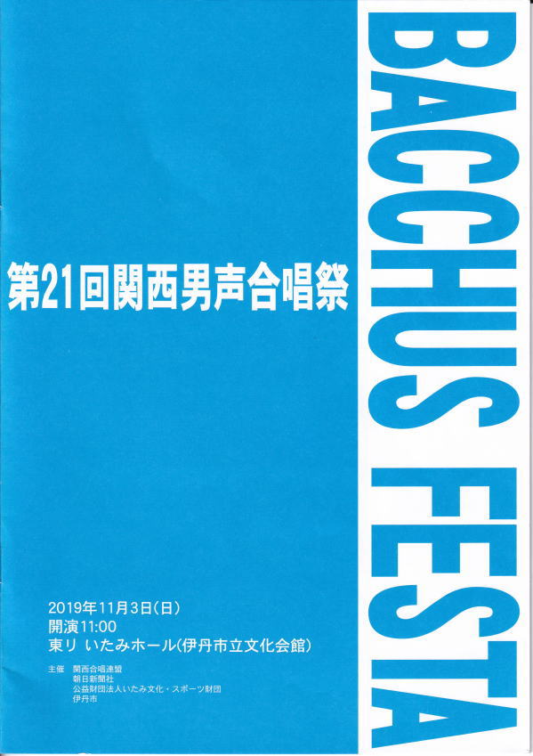 第21回関西男声合唱祭 バッカス・フェスタ BACCHUS FESTA 2019年11月3日(日) 東リ いたみ文化ホール |