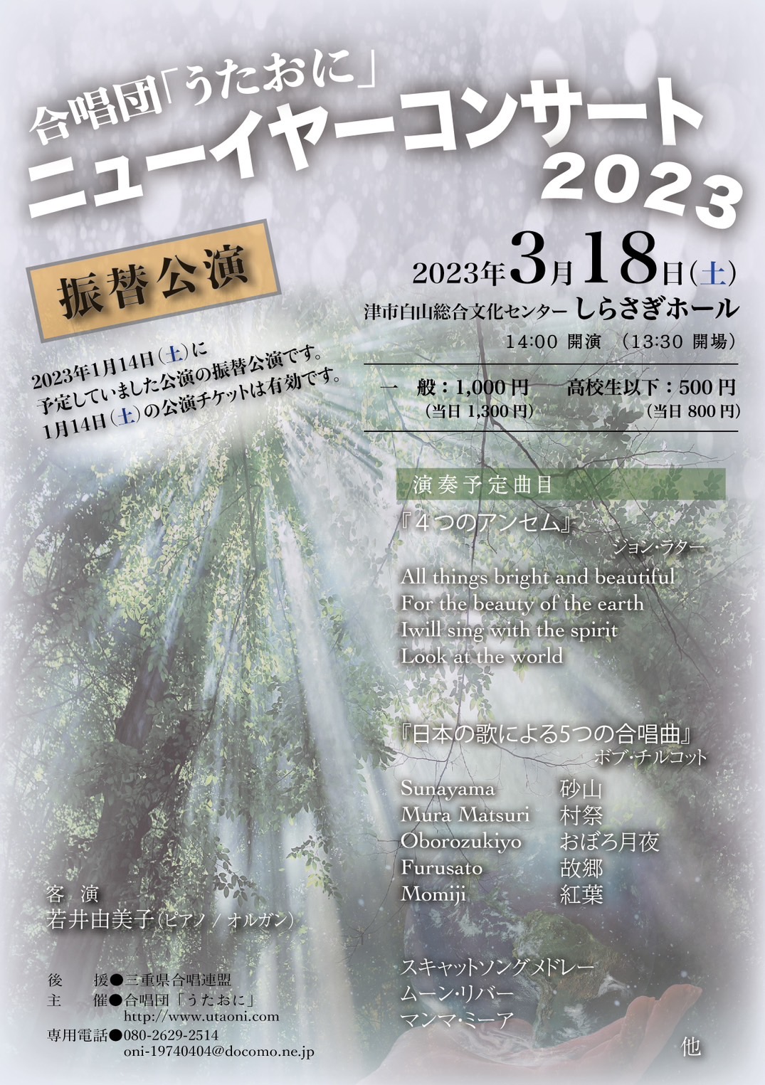 | ニューイヤーコンサート2023 2023年3月18日(土) 14:00 開演 (13:30 開場) 津市白山総合文化センターしらさぎホール 一般 1000円 高校生以下 500円 (当日は300円増) |