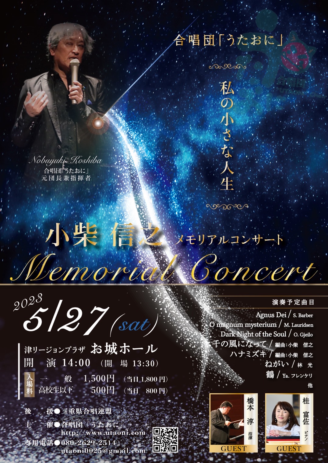 | 小柴信之Memorial Concert ~私の小さな人生~ 2023年5月27日(土) 14:00 開演 (13:30 開場) 津リージョンプラザお城ホール |